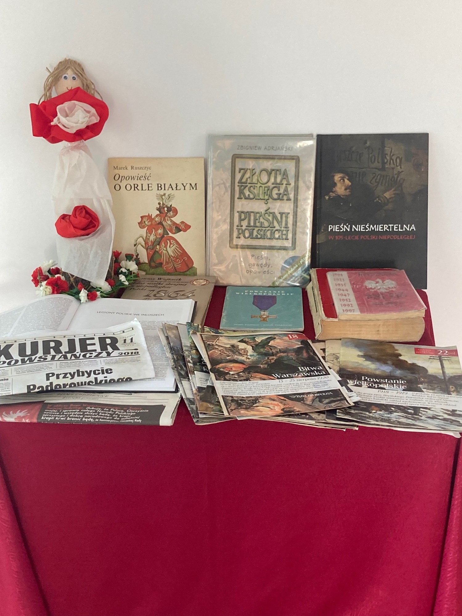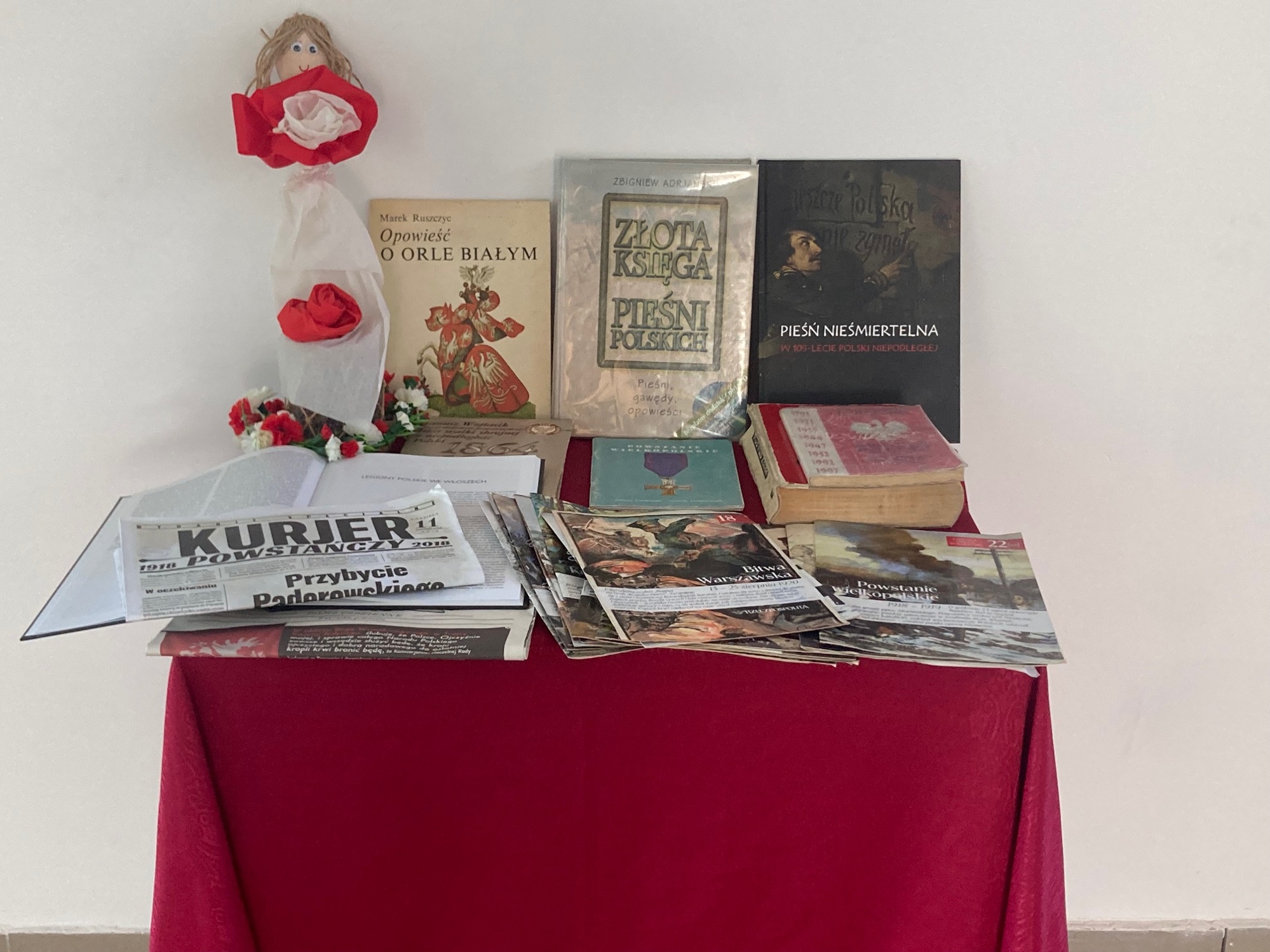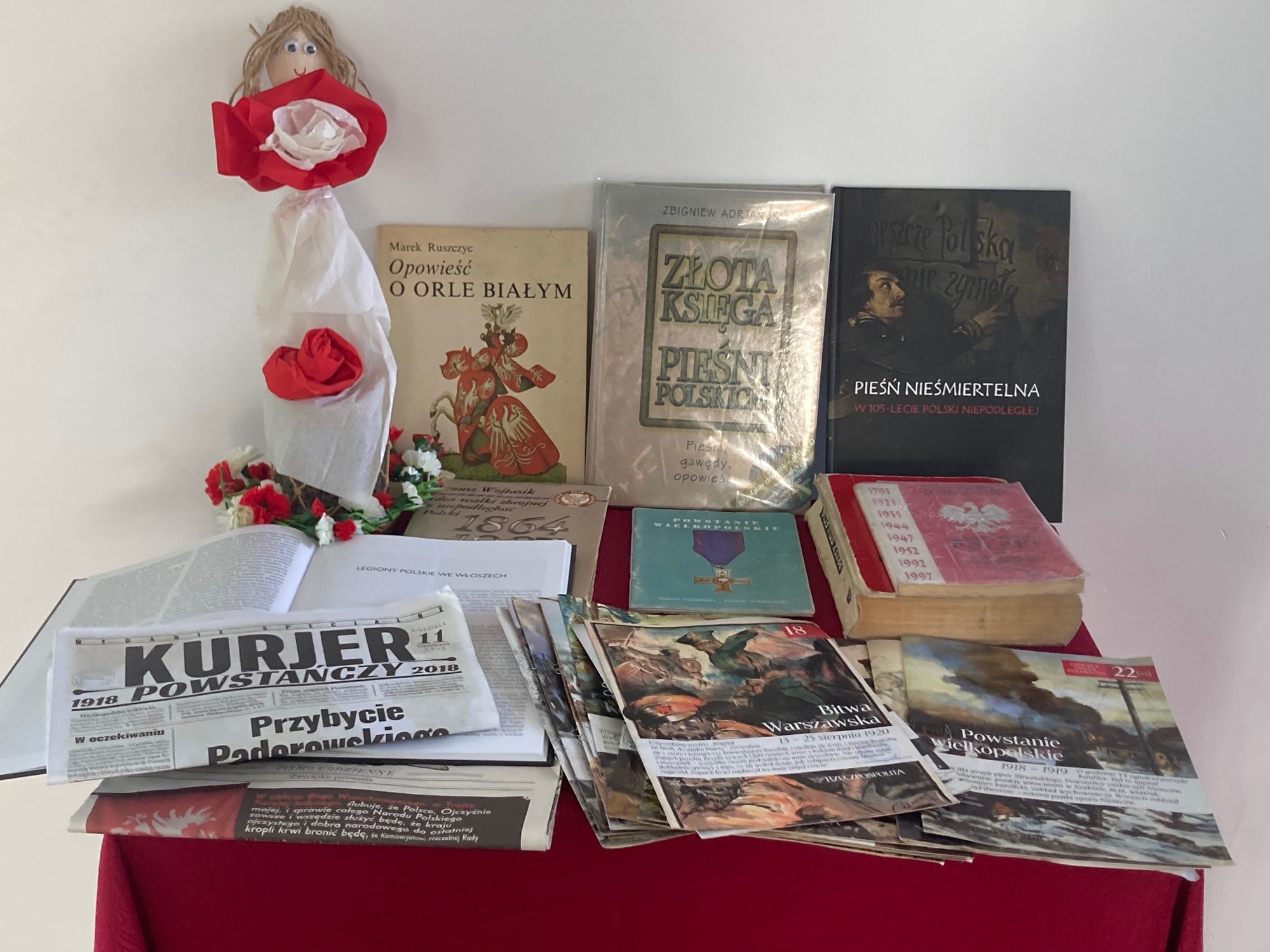Z okazji Narodowego Święta Niepodległości przygotowaliśmy okolicznościową wystawkę w holu szkoły złożoną z książek historycznych i czasopism jak np. "Kurier Powstańczy" i "Polska zbrojna", których kopie pozyskaliśmy z Domu Powstańca Wielkopolskiego w Gnieźnie.